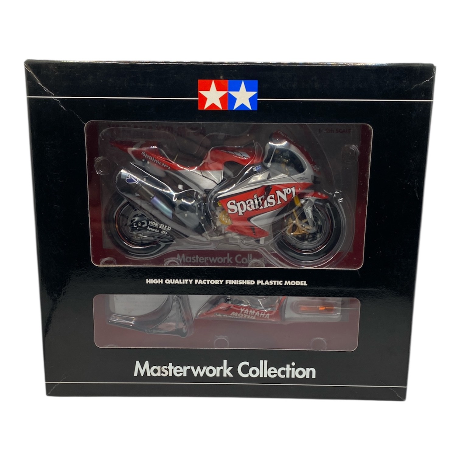 Miniatura premium da icônica Yamaha YZR-M1 da temporada de 2004 da MotoGP, pilotada por Carlos Checa (Spain's No.1). Este item faz parte da exclusiva Masterwork Collection da Tamiya, o que significa que é um modelo finalizado de fábrica com pintura e montagem profissionais de alta precisão.